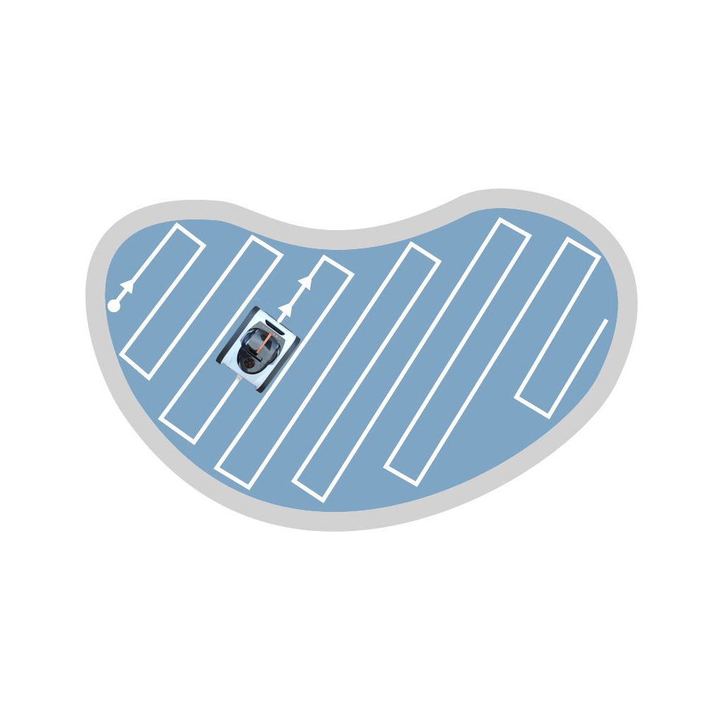 Intelligenter 3D-Reinigungspfad in geordneten Bahnen, welcher auch Poolwände mit einbezieht und so die Reinigungszeit verkürzt.