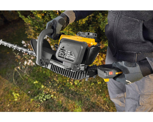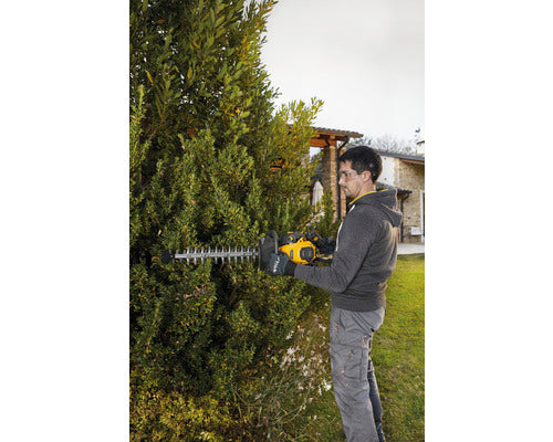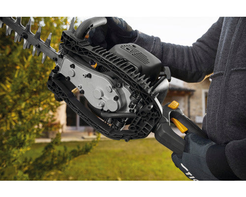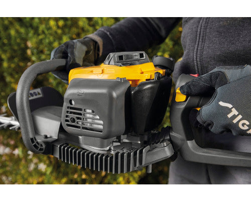 Die STIGA Benzin-Heckenschere HT 525 bietet die perfekte Kombination aus Leistung und Komfort und bietet eine einfache Handhabung. Angetrieben wird die HT 525 von einem effizienten 22,5 cm³ Benzin Zweitaktmotor mit einer Leistung von 0,65 kW / 1,14 PS. Das Mehrpunkt-Anti-Vibrationssystem dämpf die Vibrationen des Motors, sodass diese kaum noch am Griff zu spüren sind. Für einen gleichmäßigen und sauberen Schnitt ist die HT 525 mit einem hochwertigen und lasergeschnittenen Messer mit Doppelschnitt ausgestattet. Das Messer verfügt über eine Schnittlänge von 46 cm und schneidet, mit einem Zahnabstand von 35 mm, auch dickere Zweige mit einem Durchmesser von bis zu 27 mm, ohne Probleme. Für einen sicheren Schnitt an Wänden und Mauern ist die Heckenschere mit einem Klingenspitzenschutz ausgestattet. Das Easy-Start-System ermöglichet einen schnellen Start mit nur wenigen Zügen. Für eine schnelle und einfache Wartung verfügt der HT 525 über einen werkzeuglosen Zugang zum Luftfilter. Seine ergonomischen und verstellbaren Griffe sorgen zudem für außergewöhnliche Manövrierfähigkeit und komfortables vertikales und horizontales Schneiden. Ein Schwertschutz ist im Lieferumfang enthalten.