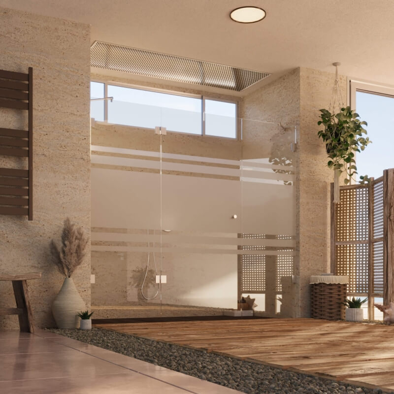 Transparent² kann nicht nur durch das lückenlose Schließen ohne Dichtung überzeugen, unsere Dusche ist über die Eintragung als Gebrauchsmusterschutz abgesichert. Eine weitere besondere Komponente der dichtungslosen Dusche ist das verwendete Verbundsicherheitsglas (VSG). Dieses besteht aus zwei Glasscheiben, die mithilfe einer Spezialfolie miteinander verbunden sind. Es liegt auf der Hand, dass VSG besonders sicher und bruchfest ist. Wir haben allerdings für Sie noch weitergedacht. Bei Transparent² werden die Glasscheiben der Duschtür und des anliegenden Festteils leicht versetzt geklebt, wodurch Glasüberstände entstehen. Durch diesen werkseitigen Versatz legen sich die Überstände der Gläser bündig aneinander und schließen die Duschkabine dicht ab. Für Sie bedeutet das Sicherheit, lang anhaltende Ästhetik und Reinigungskomfort in einem.