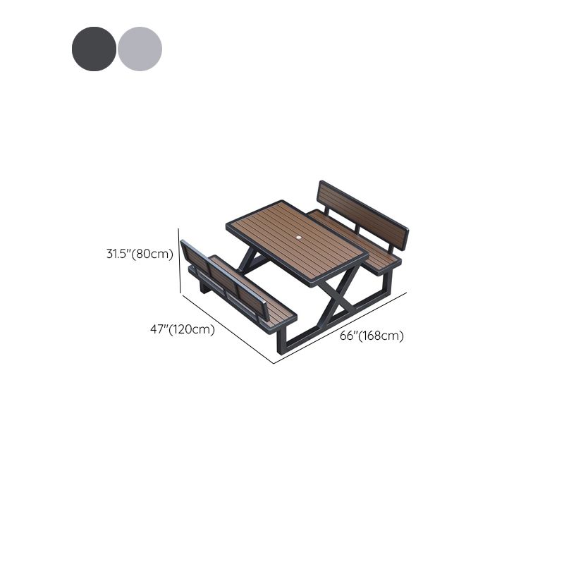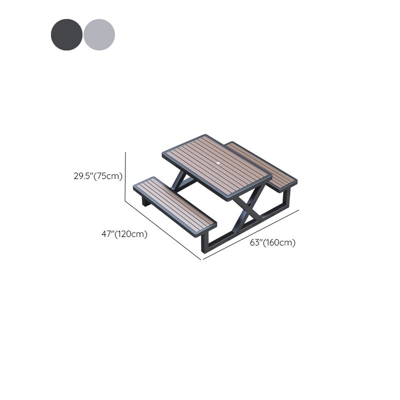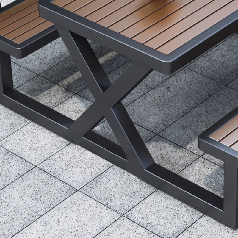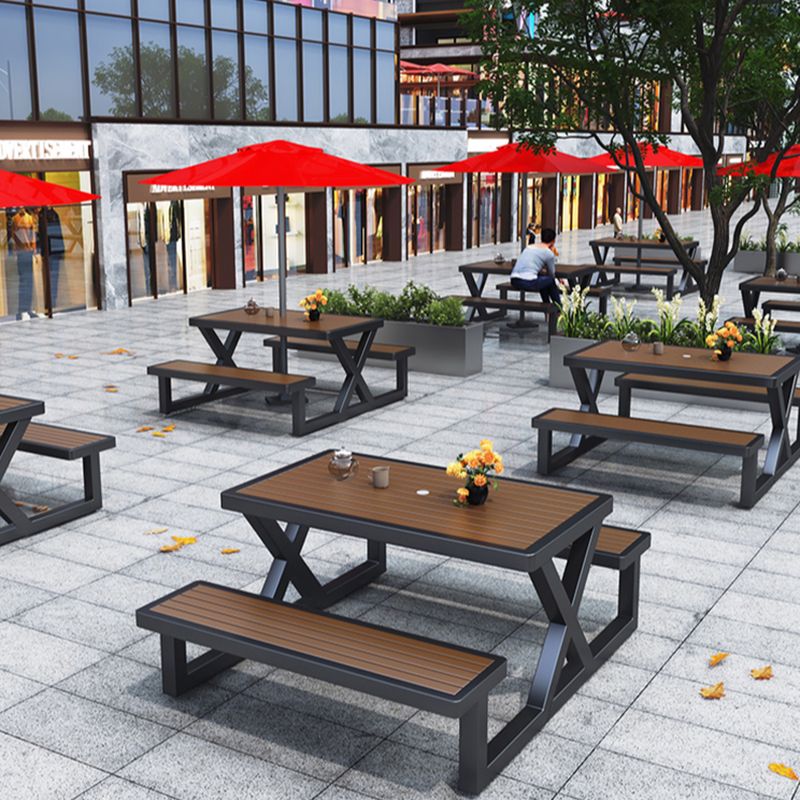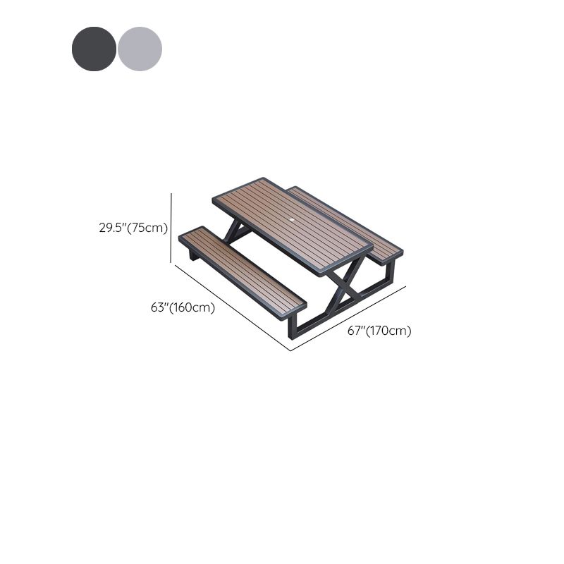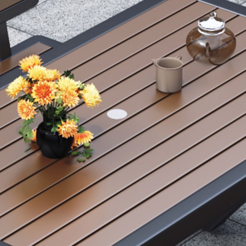 Einfacher Outdoor-Picknicktisch in Kakao, UV-beständig mit rechteckigem Metallrahmen