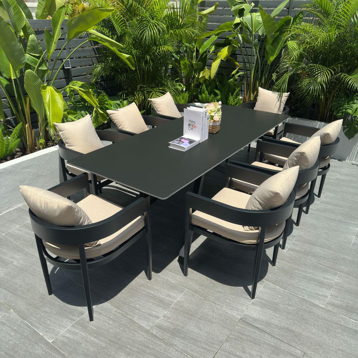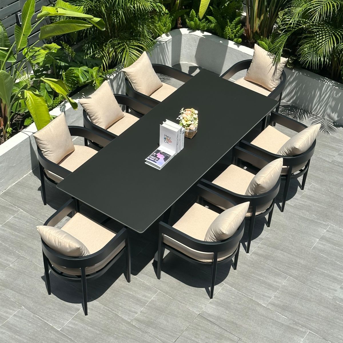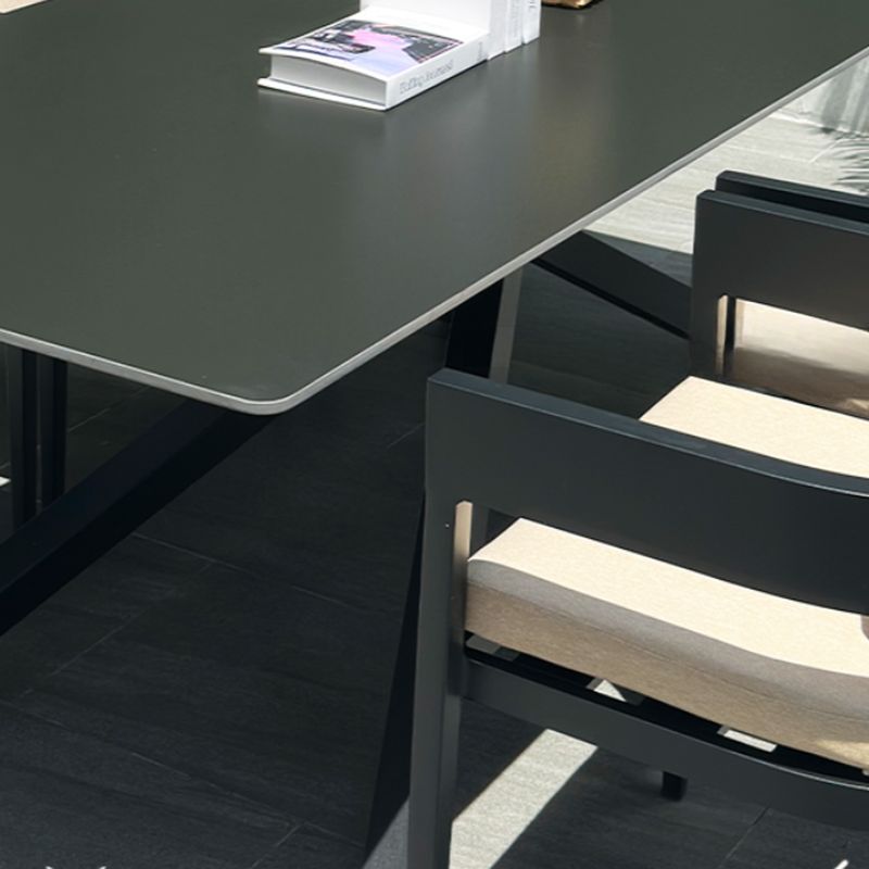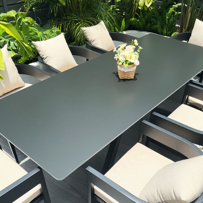 Einfacher Terrassentisch mit schwarzer Steinplatte, UV-beständig, rechteckig