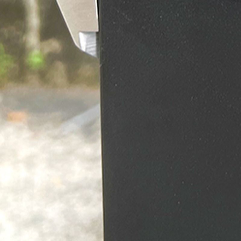 Einfacher Terrassentisch mit schwarzer UV-beständiger rechteckiger Tischplatte und Metallrahmen