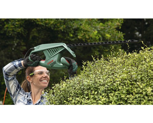 Mit der elektrischen Heckenschere von BOSCH bist Du gut ausgerüstet, um etwas gegen die wild wuchernde Hecke zu tun.