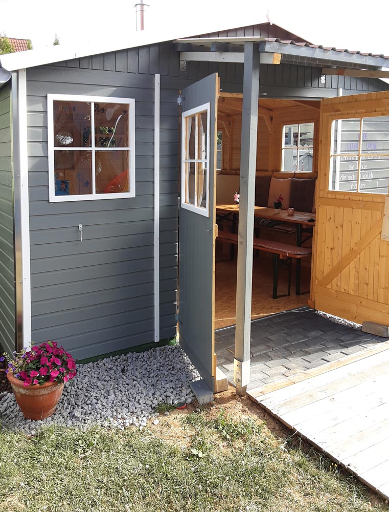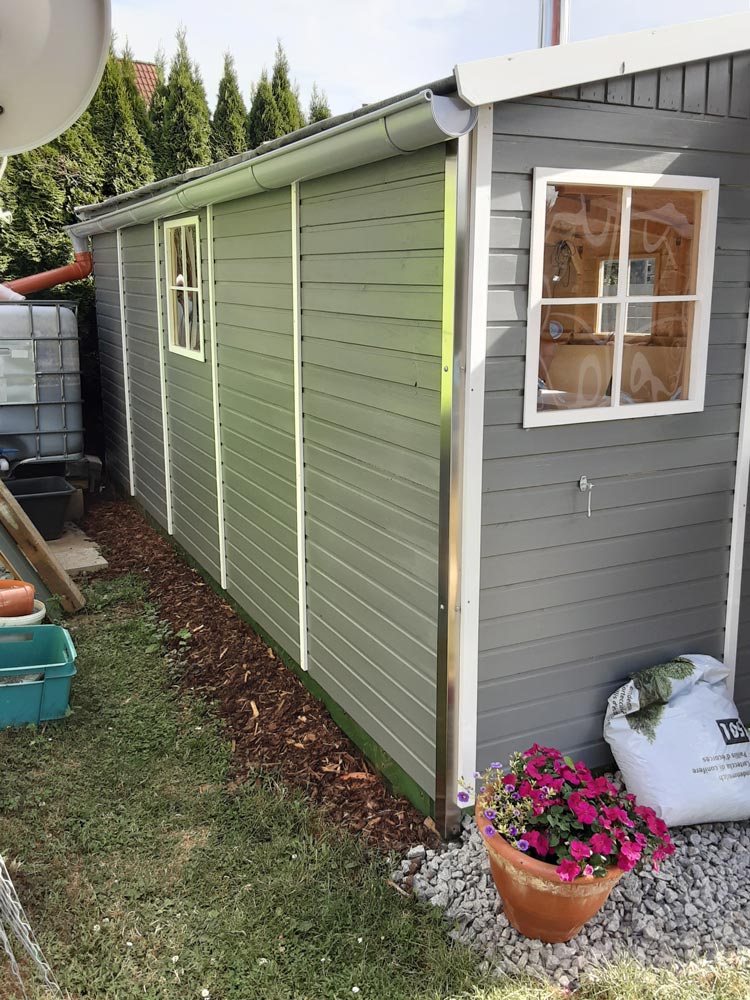 Ihr Elementgartenhaus von Steiner Shopping ist aus hochwertigem Holz gefertigt und sollte deshalb auch entsprechend geschützt und gepflegt werden, damit Sie besonders lange Freude daran haben. Alle Holzteile werden naturbelassen geliefert. Sie können das Haus mit einem Anstrich Ihrer Wahl individuell gestalten. Im Zuge der Montage sollten Nut und Feder mit einem Holzschutzmittel gegen Fäulnis gestrichen werden. Der Außenanstrich sollte gleich nach der Montage mit einer pigmentierten, offenporigen Holzschutzlasur erfolgen. Wir empfehlen eine helle oder transparente Holzschutzlasur, da das Holz von alleine nachdunkelt. Sehr gut wirkt optisch meist ein farblich dunklerer Absetzen bestimmter Bauteile, wie z.B. Türen oder Fenster. Der Außenanstrich sollte nach ungefähr 10 Wochen wiederholt werden. Je nach Witterungseinfluss - im Regelfall alle 2 Jahre - sollte das Haus von außen nachbehandelt werden.