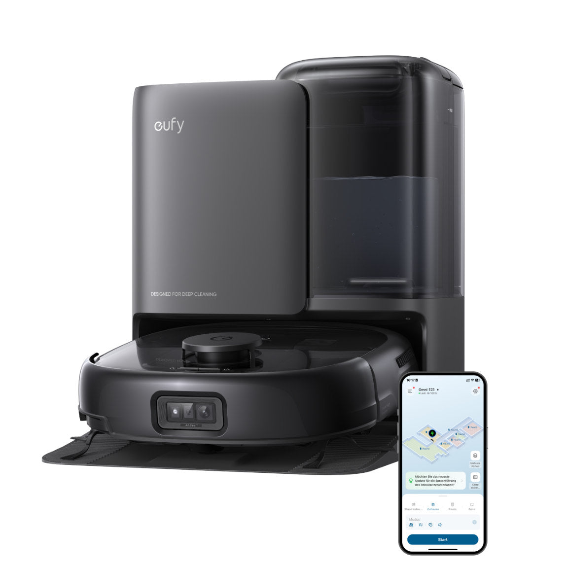 Der eufy Omni E25 bietet Dir eine gründliche und komfortable Reinigung im Alltag. Mit 20.000 Pa Saugkraft entfernt er selbst tief sitzenden Schmutz, während die intelligente Laser-Navigation für eine systematische und präzise Abdeckung sorgt. Teppiche erkennt der Roboter automatisch und passt die Saugkraft dank BoostIQ effizient an. Die selbstreinigende Station übernimmt das Entleeren und Trocknen, während die DuoSpiral-Bürste Haarverwicklungen verhindert. Über die App steuerst Du alles flexibel und Matter sorgt für nahtlose Smart-Home-Integration. So bleibt Dein Zuhause sauber, ohne dass Du Dich ständig darum kümmern musst.