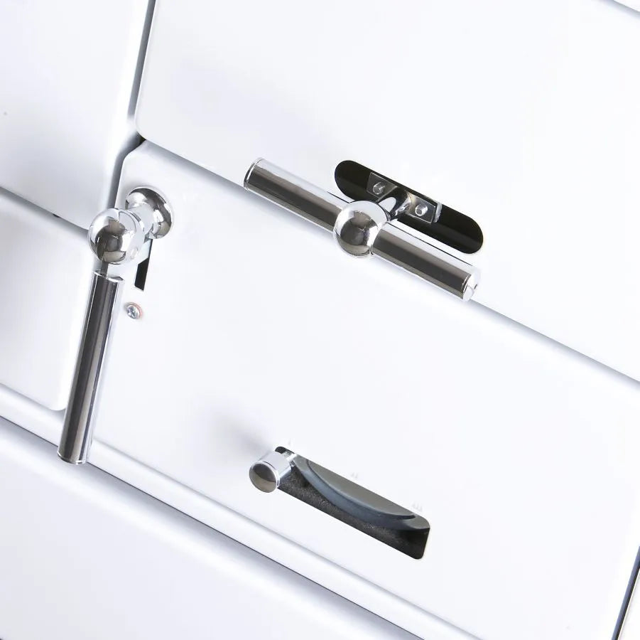 - Weiß mit Kunststoff- oder Chrombeschlägen