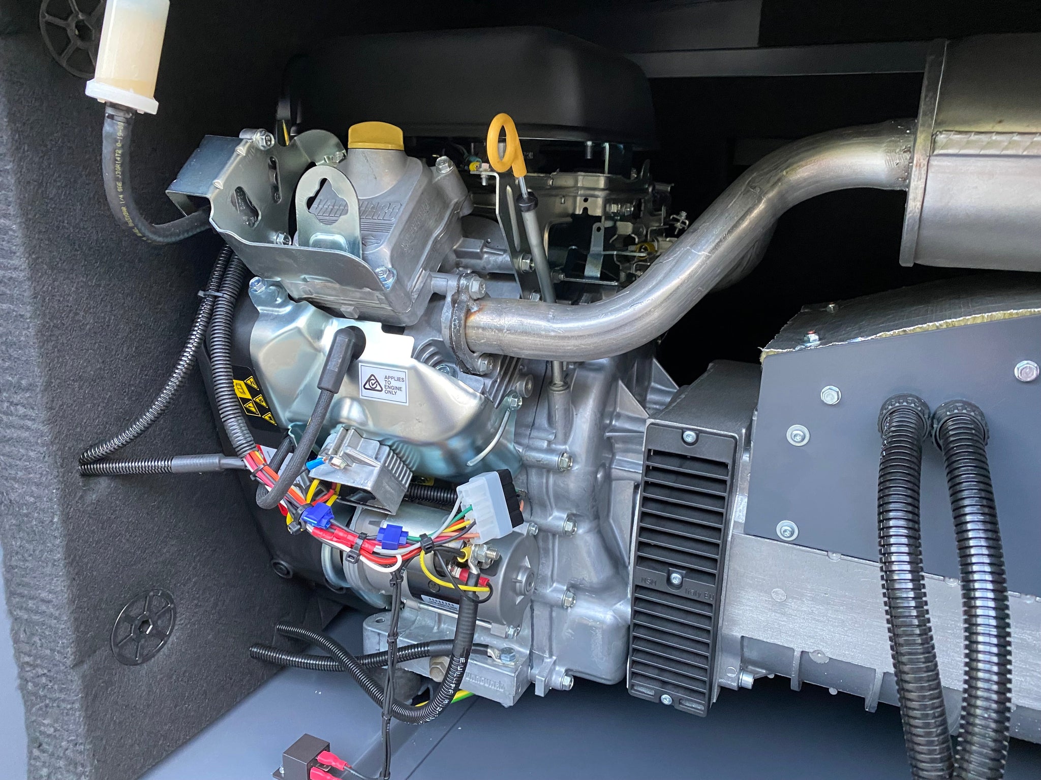 Zusätzlich verfügt der Stromgenerator über einen Schallschutz, der die Lautstärke auf ca. 66 dB auf 7m Entfernung reduziert.