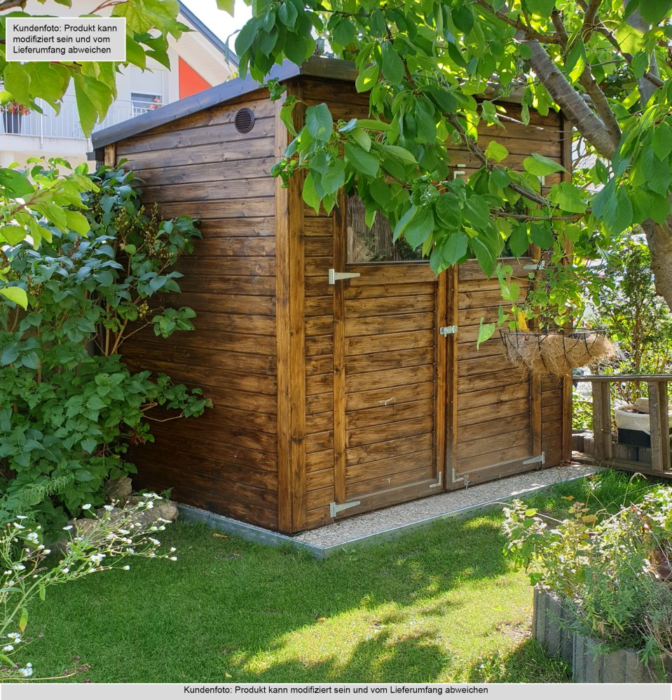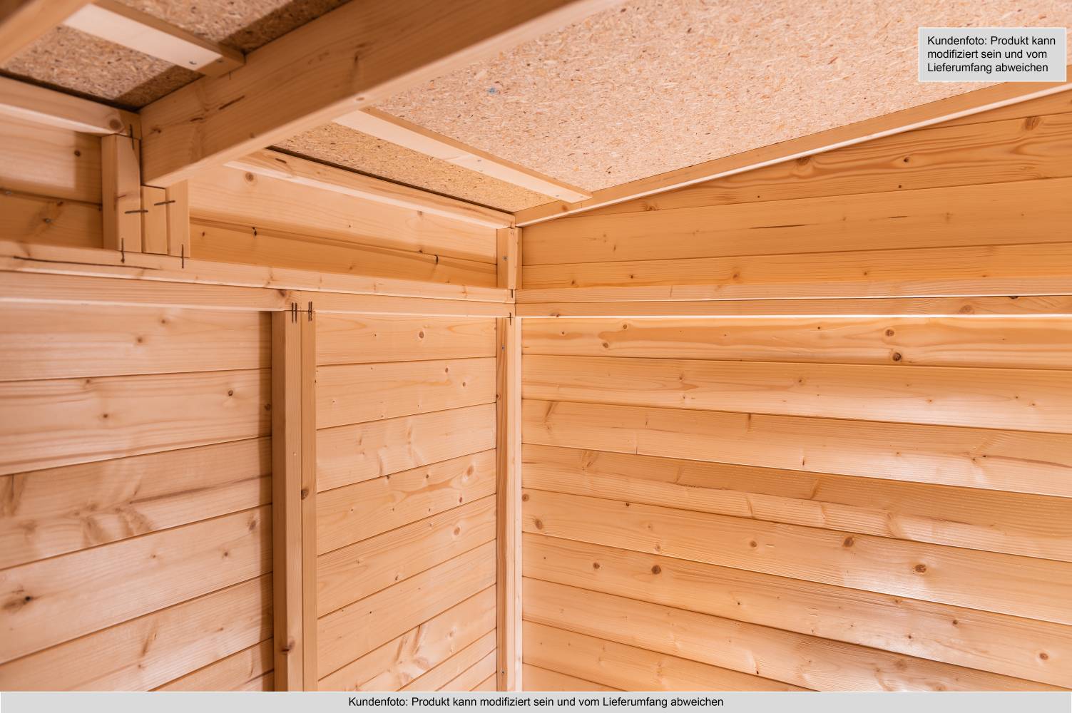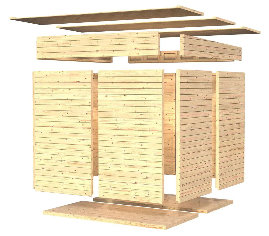 Aufgrund der vorgefertigten Wandelemente aus 14 mm Profilbrettern sowie den Dachelementen aus Multifunktionsplatten erfolgt der Aufbau Ihres Gartenhauses unkompliziert und schnell.