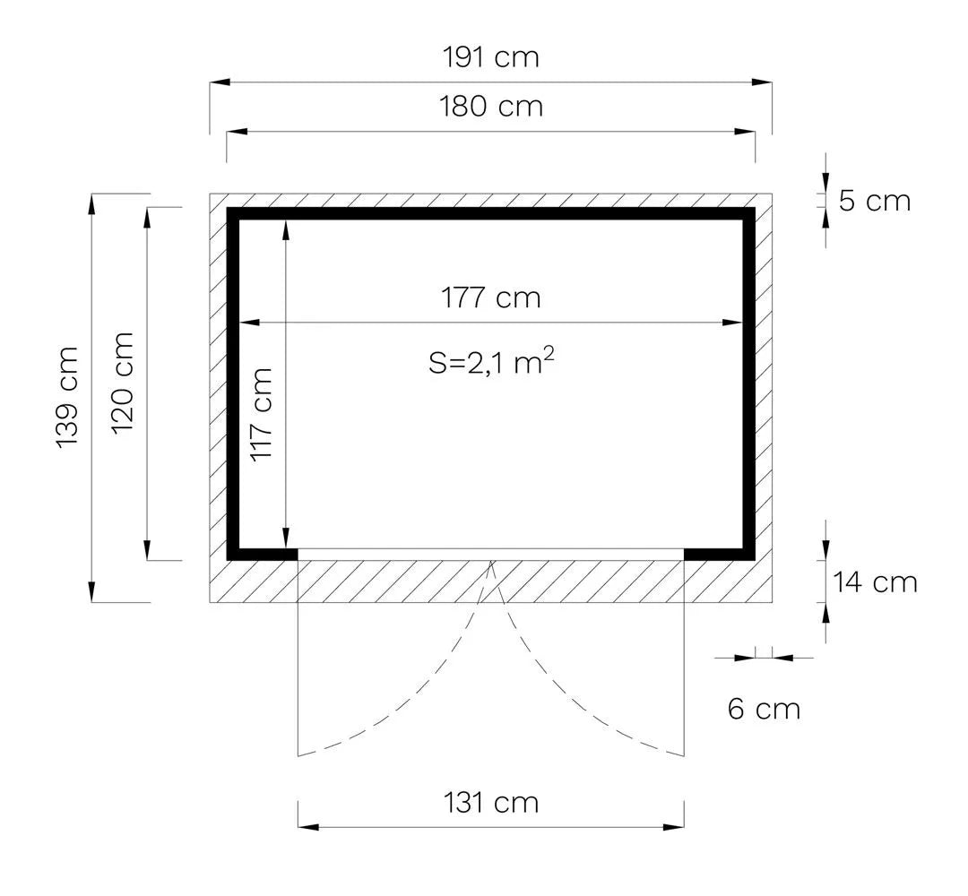 - Abmessungen inkl. Dachüberstand: 191 x 139 cm