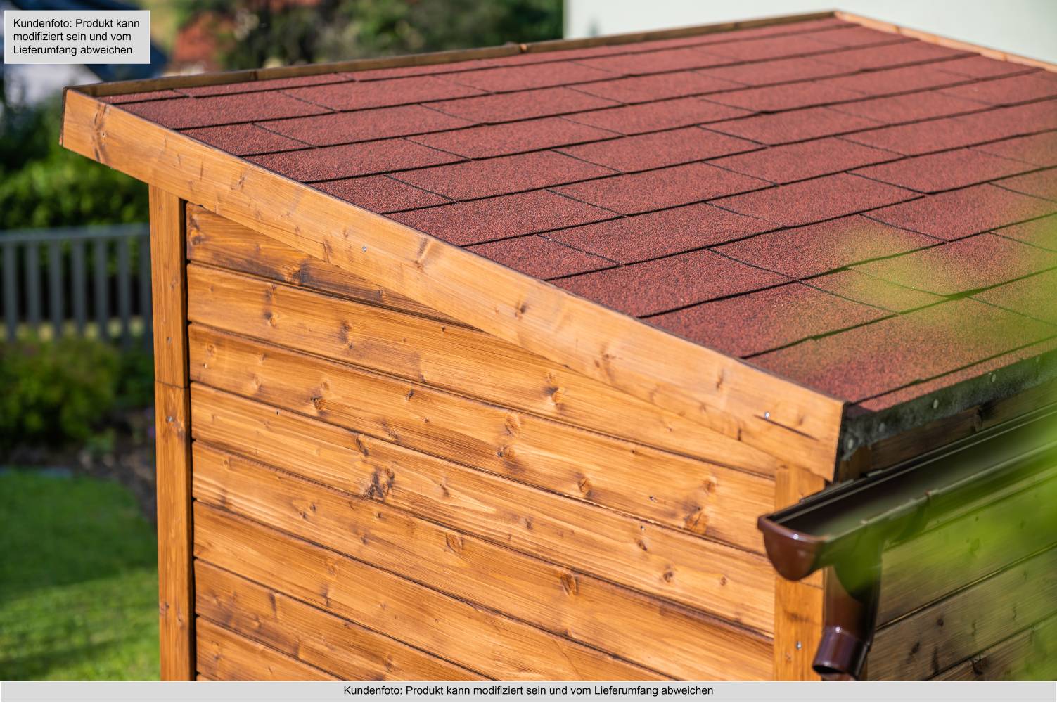 Hinweise zur Dacheindeckung Wir empfehlen bei Satteldächern: unsere Bitumen Dachschindeln, die Sie als 3m² Packungen als Zubehör finden. Bei Flach- und Pultdächern eignet sich unsere selbstklebende Dach- und Dichtungsfolie, die Sie als 5m² Packung ebenso als Zubehör finden.