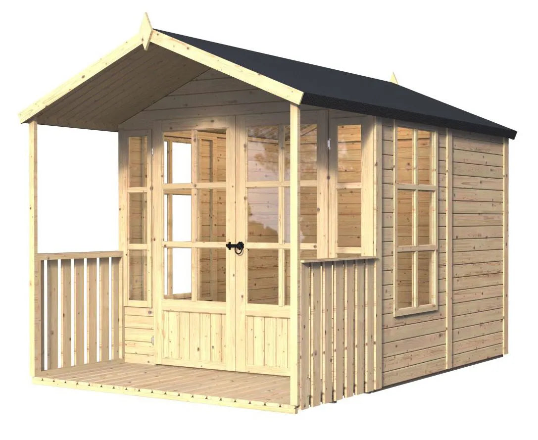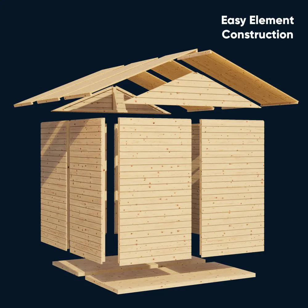 Aufgrund der vorgefertigten Wandelemente aus 19 mm Profilbrettern erfolgt der Aufbau Ihres Gartenhauses unkompliziert und schnell.