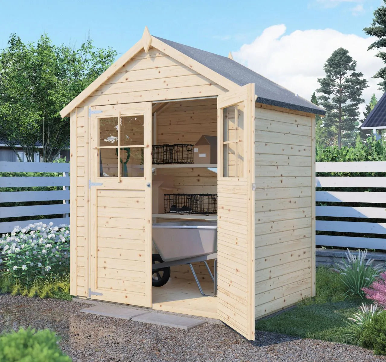 Unsere Gartenhäuser überzeugen in klassischer Optik. Das ansprechende Design fügt sich harmonisch in Ihre Gartenlandschaft ein.