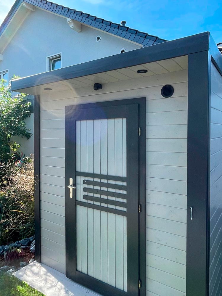 Unsere Gartenhäuser überzeugen mit einer klassischen Form. Das zeitlose Design fügt sich harmonisch in Ihre Gartenlandschaft ein.