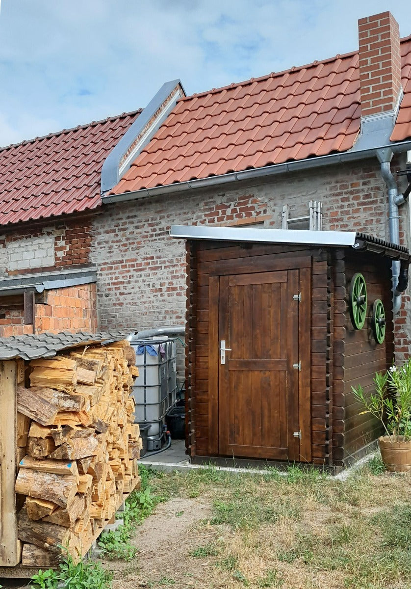Der moderne Gartenschrank / Geräteschrank "Aufgeräumt" bietet viel Platz für Ihre Geräte und Gartenmöbel und überzeugt zudem mit seiner natürlichen Ausstrahlung sowie attraktivem Design. Die 28 mm starken Blockbohlen werden aus unbehandeltem, FSC® zertifiziertem, nordischem Fichtenholz gefertigt. Die perfekte Verarbeitung sowie eine wind- und regendichte Chaletschnitt-Eckverbindung garantieren Schutz vor jeder Witterung und eine lange Lebensdauer.