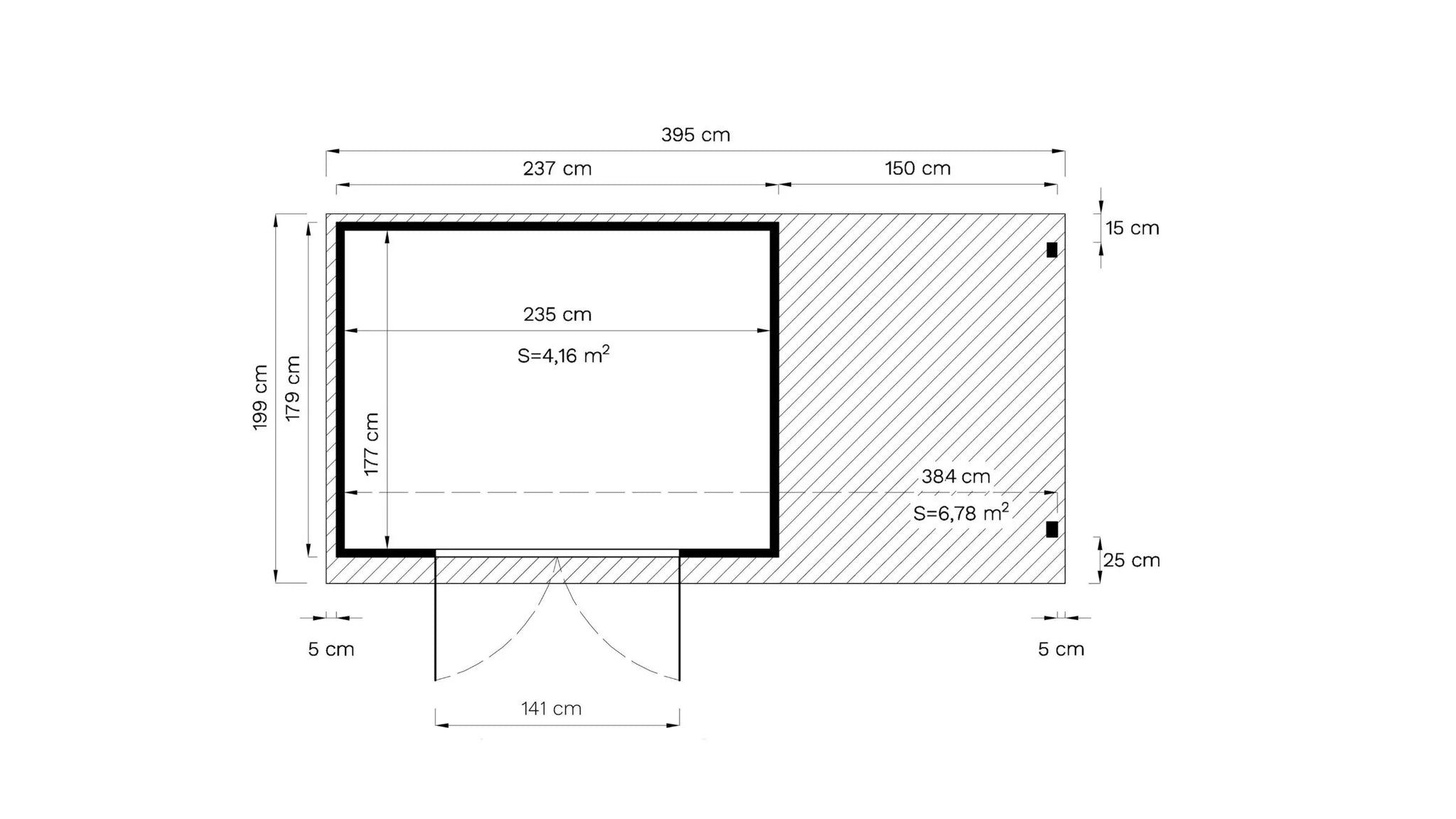 - Abmessungen inkl. Dachüberstand: 395 x 200 cm