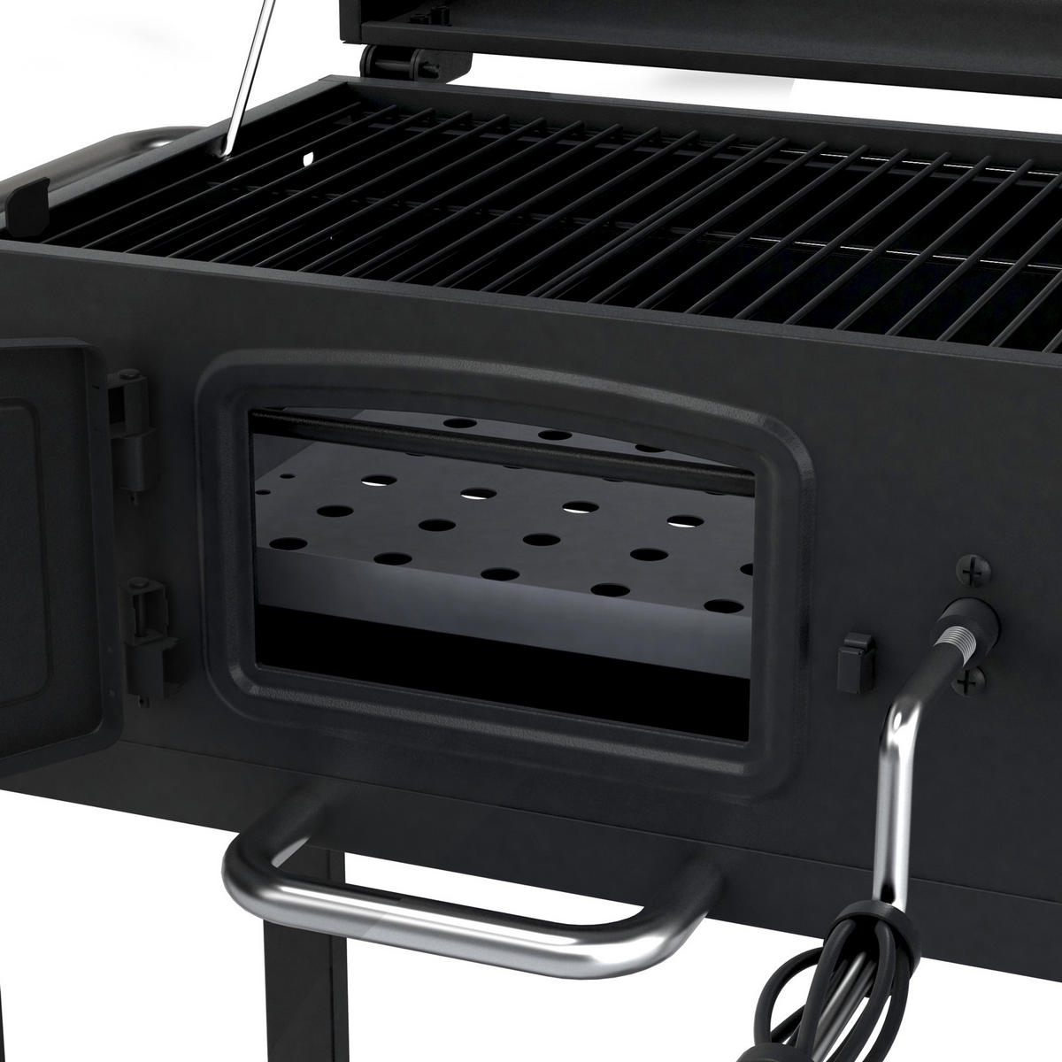 Die Grillfläche verfügt über einen 2-tlg. porzellanbeschichteter Grillrost und ein höhenverstellbarer Kohlerost, der Grillen oder Smoken ermöglicht. Mit dem integrierten Deckelthermometer können Sie die Temperatur unkompliziert steuern und gleichzeitig die Luftzufuhr über die beiden Ventile regulieren. Bei geschlossenem Deckel können Sie so wunderbar räuchern oder indirekt grillen!