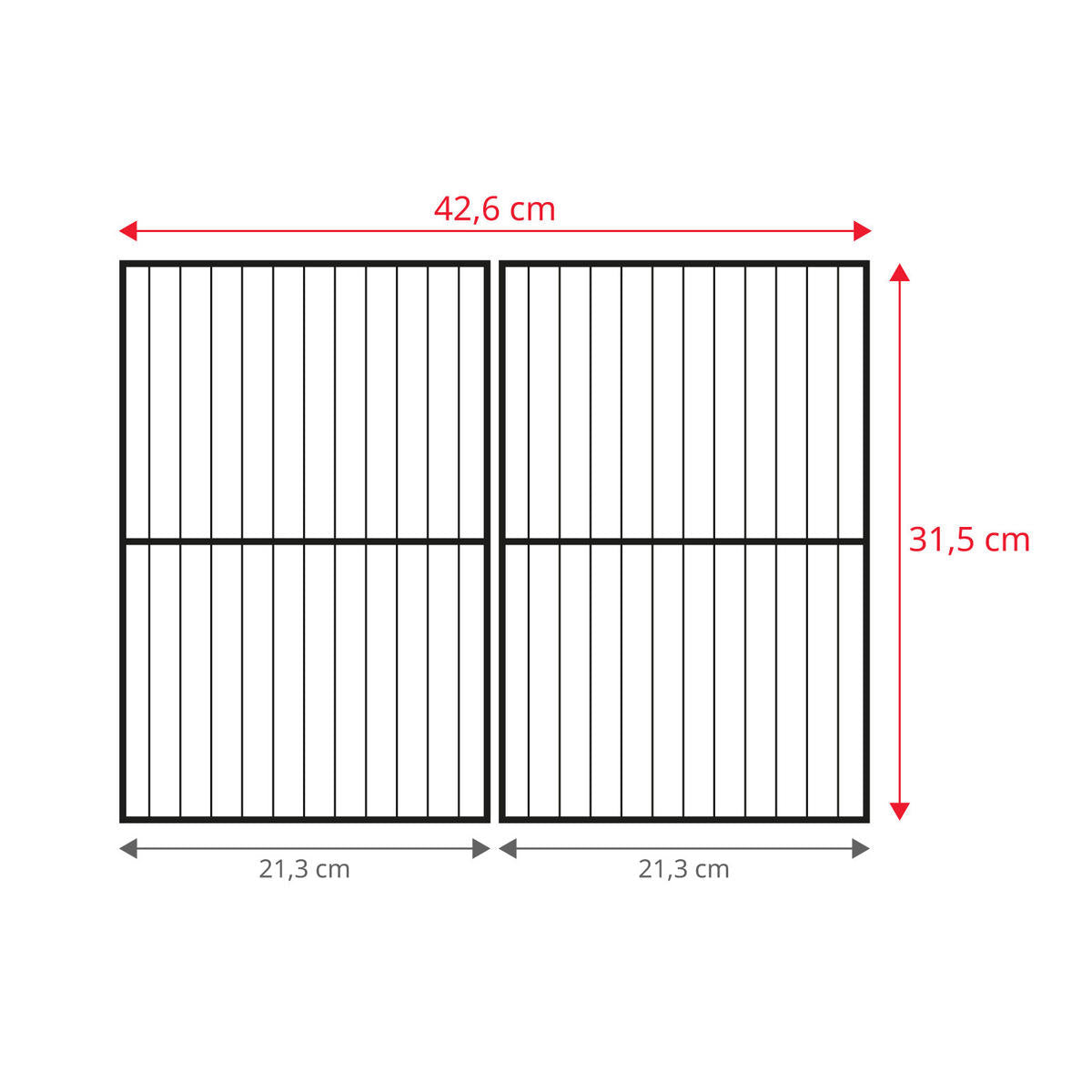 - Grillfläche: ca. 42,6 x 31,5 cm (BxT)