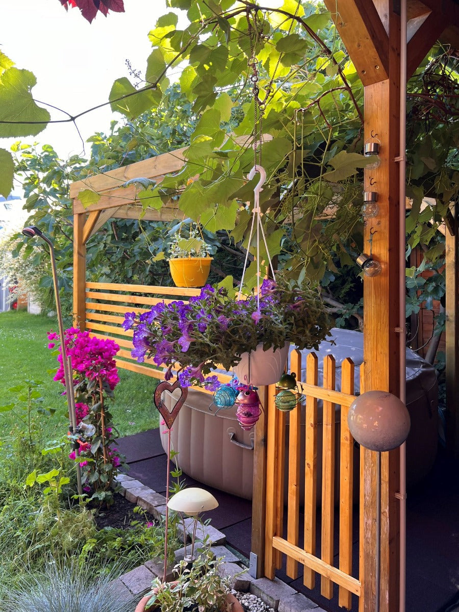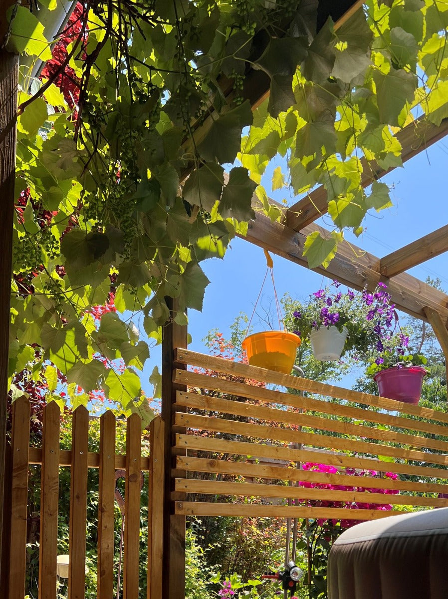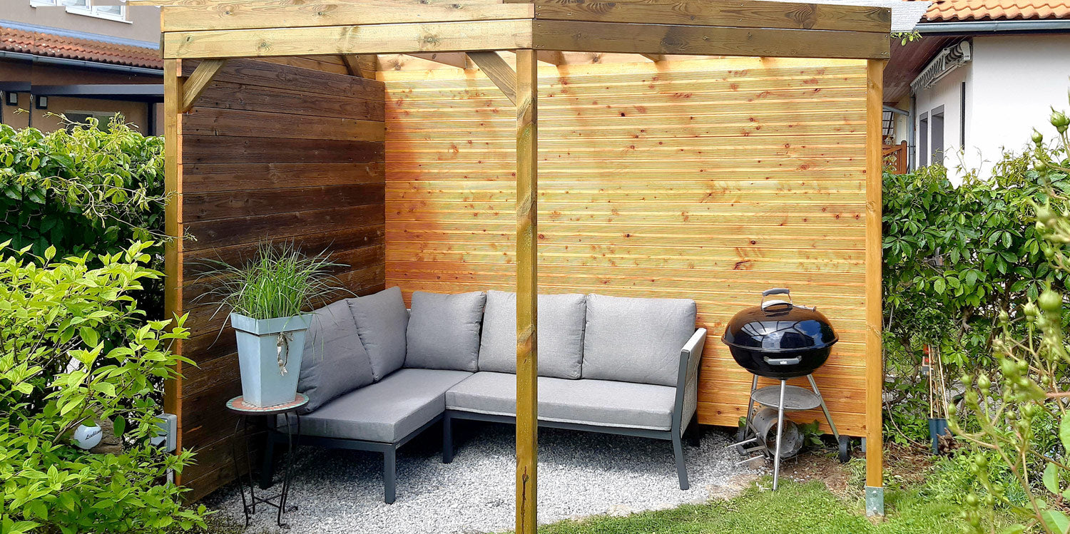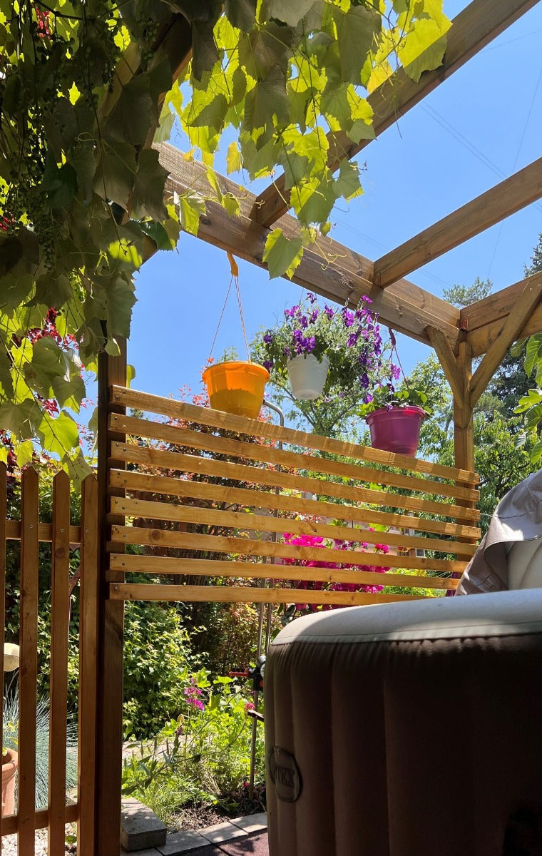 Mit der natürlichen Farbe lässt sich die Überdachung perfekt in jede Gartenlandschaft integrieren und mit anderen Elementen kombinieren.