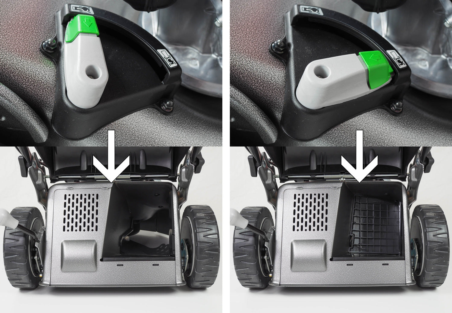 Der neue HRG 466C1 SK EP verfügt serienmäßig über ein Mulchmesser sowie eine komfortable Mulchklappe. So können Sie ganz einfach zwischen Fangen und Mulchen sowie Heckauswurf wechseln.
