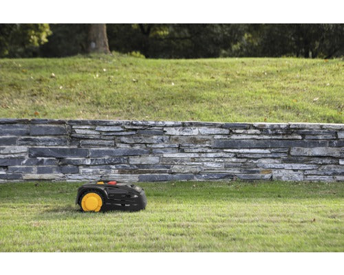 Der Radantrieb des Mähroboters treibt die beiden Antriebsräder kraftvoll an. Selbst bei leichten Steigungen marschiert der LandXape LX796 fleißig über Ihren Rasen. Der schwarze Rasenschneider bringt insgesamt 7 kg auf die Waage. Seine Energie bezieht der Mäher aus einem Akku mit 20 V. Der verwendete Lithium-Ionen-Akku verfügt über eine Akkukapazität von 2 Ah. Denken Sie daran, den Akku vor der ersten Benutzung komplett aufzuladen. Danach setzen Sie den Grasentferner ein, wie es Ihnen gefällt. Übrigens, der Mähroboter fährt ganz automatisch in seine Ladestation, wenn es an der Zeit ist, den Akku aufzuladen. Der LandXcape lässt sich nicht mit Ihrem Smartphone oder Tablet steuern. Trotzdem haben Sie die Möglichkeit, Ihren neuen Liebling effektiv mit einem PIN-Code zu schützen. Dies sollte genügen, sodass Langfinger das Interesse an Ihrer Mähmaschine verlieren.