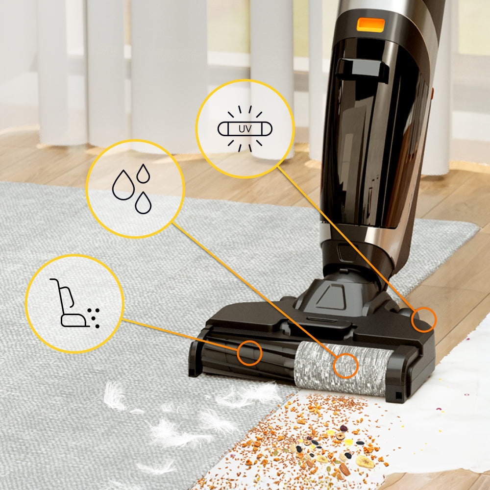 - 3-in-1 Reinigung: Saugen, Wischen und UV-Desinfektion in einem Gerät