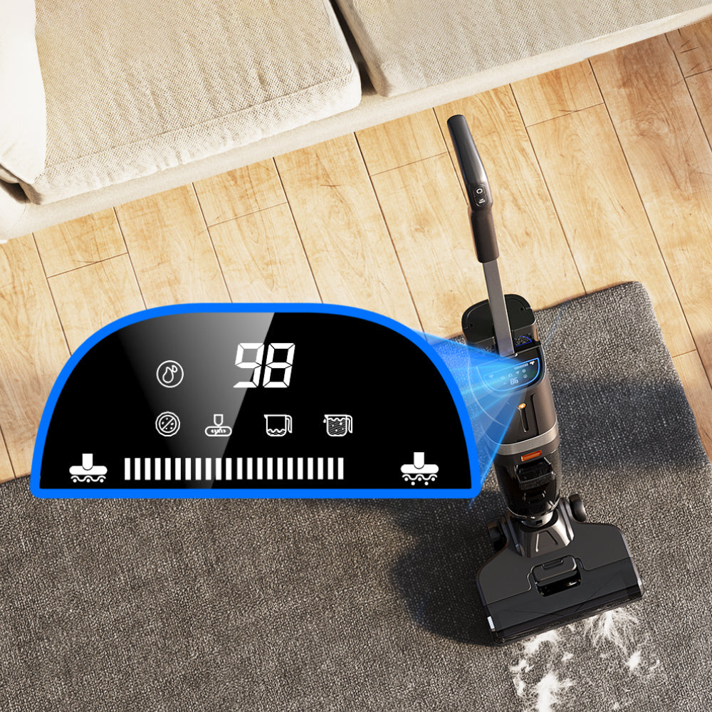 Die LED-Anzeige liefert dir alle wichtigen Informationen: Akkustand, Wassertankfüllung, Bürstenstatus und Reinigungsmodus. Du siehst auf einen Blick, wie viel Energie der Akku noch hat und wie stark die Saugleistung ist. Zudem wirst du durch aufleuchtende Symbole erinnert, wenn du die Bürste reinigen, den Wassertank auffüllen oder den Behälter mit dem Schmutzwasser leeren musst.