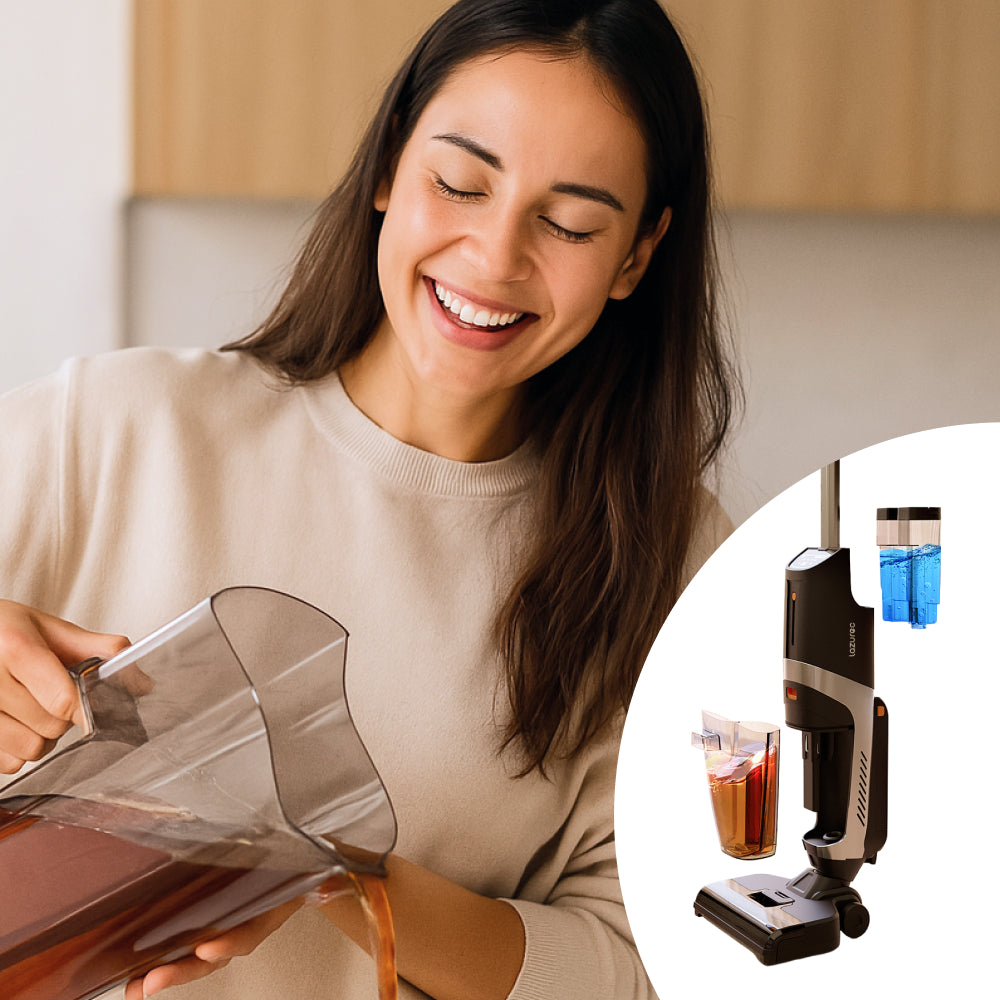 Ob verschütteter Kaffee auf Fliesen, Mehl auf Parkett oder Tierhaare auf dem Teppich – der Lazurec L5 Nass Trocken Staubsauger ist für all das gewappnet. Mit seiner intelligenten 3-in-1-Funktion saugt, wischt und desinfiziert er in einem einzigen Arbeitsgang – und das auf nahezu allen Bodenarten. Dabei sorgt die modernste Technologie für Effizienz, Hygiene und maximale Flexibilität im Haushalt.
