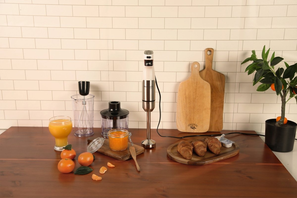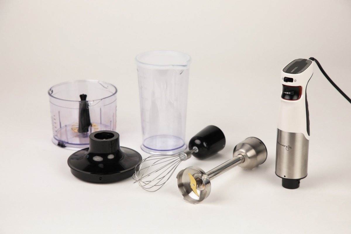 Zubehör: Hochwertiger Edelstahl-Schneebesen und Zerkleinerungsklinge