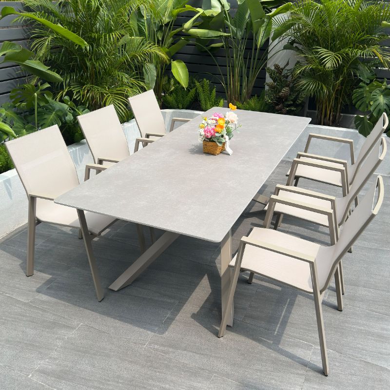Moderner rechteckiger Outdoor-Esstisch mit Zinnsteinplatte
