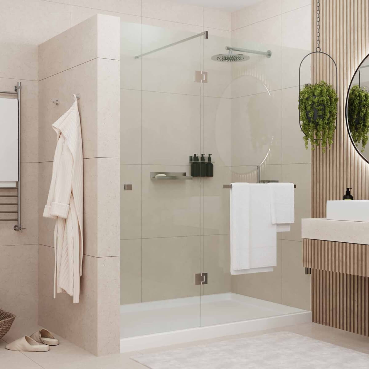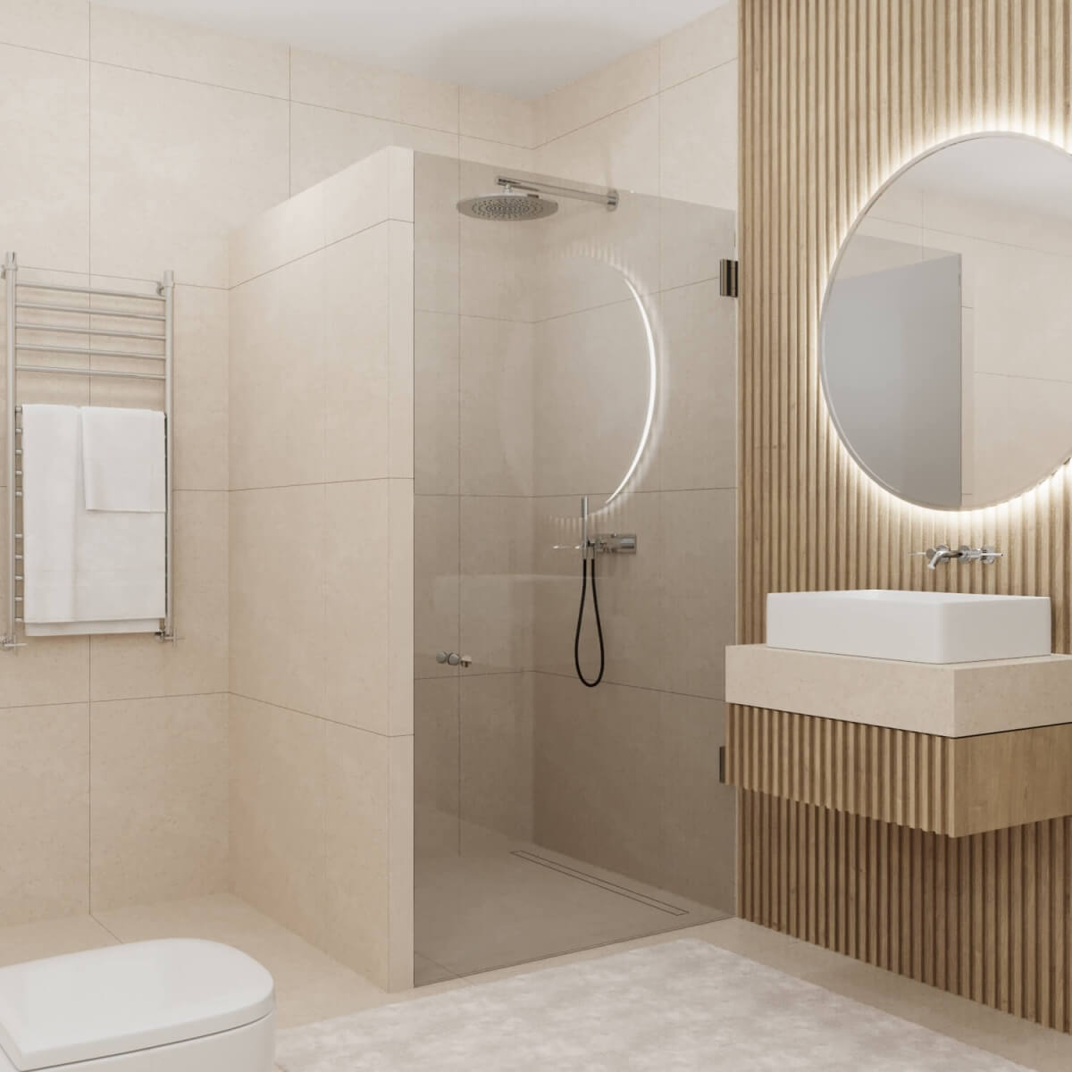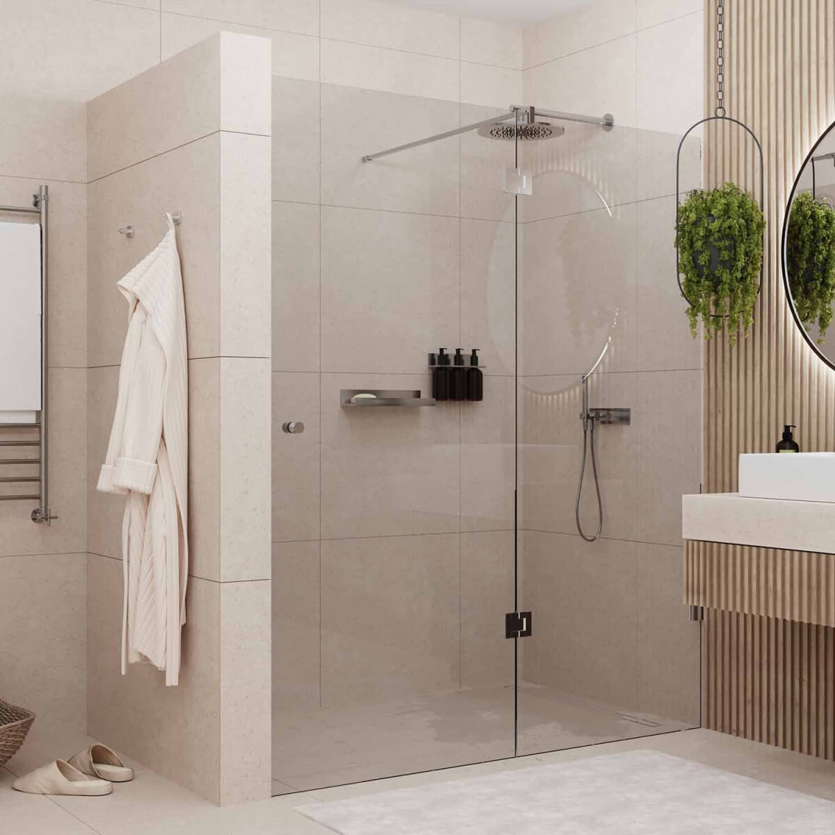 Nutzen Sie die räumlichen Gegebenheiten in Ihrem Bad aus, und konfigurieren Sie Ihre rahmenlose Nischendusche in einem zeitlosen Design. Eine transparente Wahl mit viel Lichteinfall oder blickdichtes Glas für mehr Privatsphäre – ohne Platzverschwendung vervollständigen Glaselemente aus 8-mm-ESG Ihre Dusche und schaffen gleichzeitig einen separaten Bereich im Badezimmer.