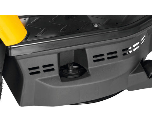 Wenn Du möchtest, kannst Du mit dem Rasentraktor STIGA Estate stundenlang ohne Pause mähen. Der Aufsitzmäher bietet Dir nämlich 6 l Tankinhalt und einen Auffangkorb mit Heckauswurf für 240 l. Möchtest Du den Rasen lieber gleich mulchen und somit für Düngung sorgen, ist ein passendes optionales Mulchkit ebenfalls im Sortiment erhältlich. Der Rasentraktor ist mit einem komfortablen Elektrostarter ausgestattet und sein Mähdeck besteht aus robustem Stahlblech. Mähst Du den Rasen am liebsten abends, leisten Dir die Scheinwerfer des Aufsitzmähers gute Dienste. Nach getaner Arbeit reinigst Du den Mäher dank des Wasseranschlusses besonders mühelos. Der gelbe Rasentraktor STIGA Estate 384 M wiegt 163 kg und hat einen Schalldruckpegel von 86 dB sowie einen Schallleistungspegel von 100 dB.