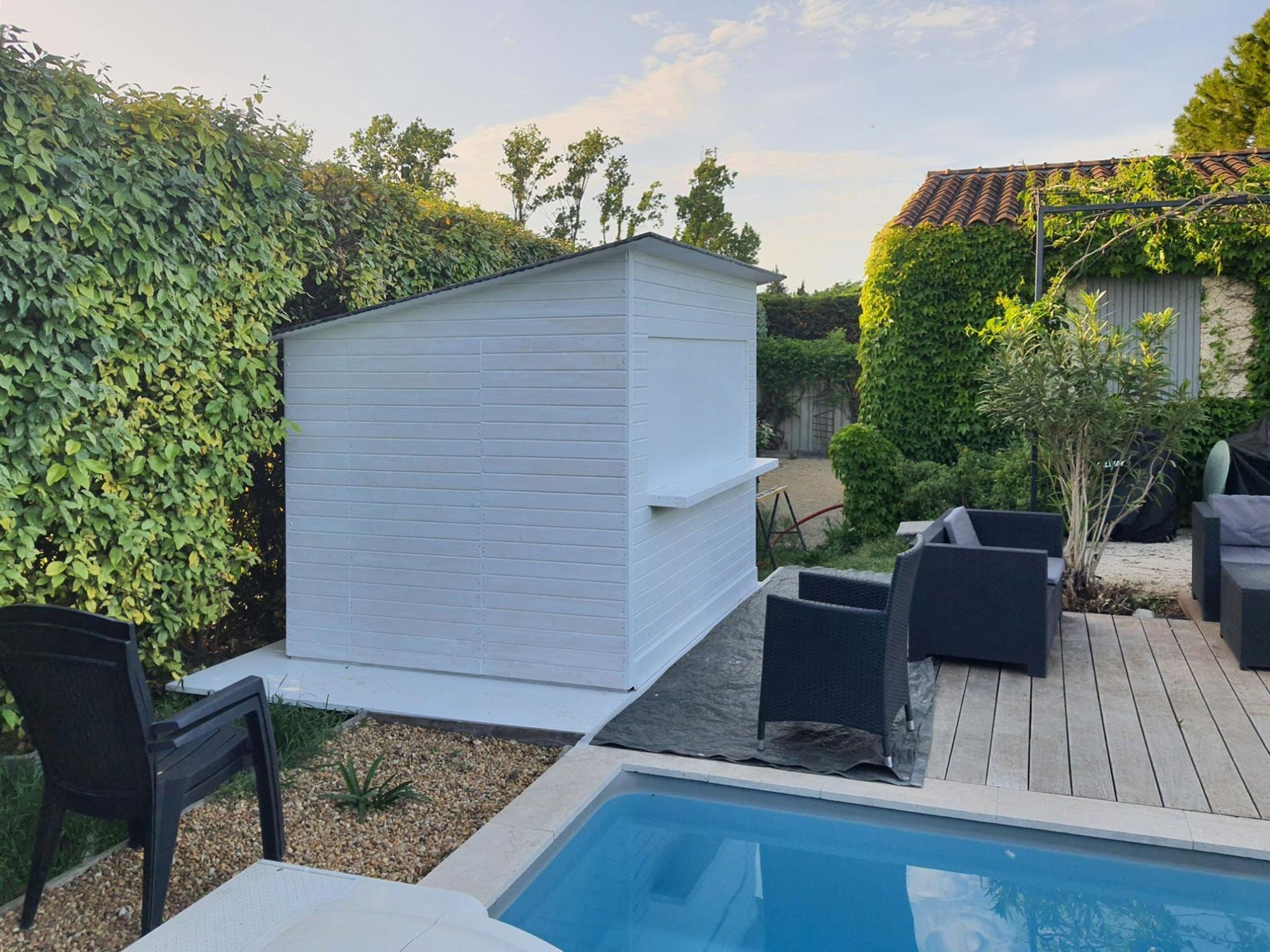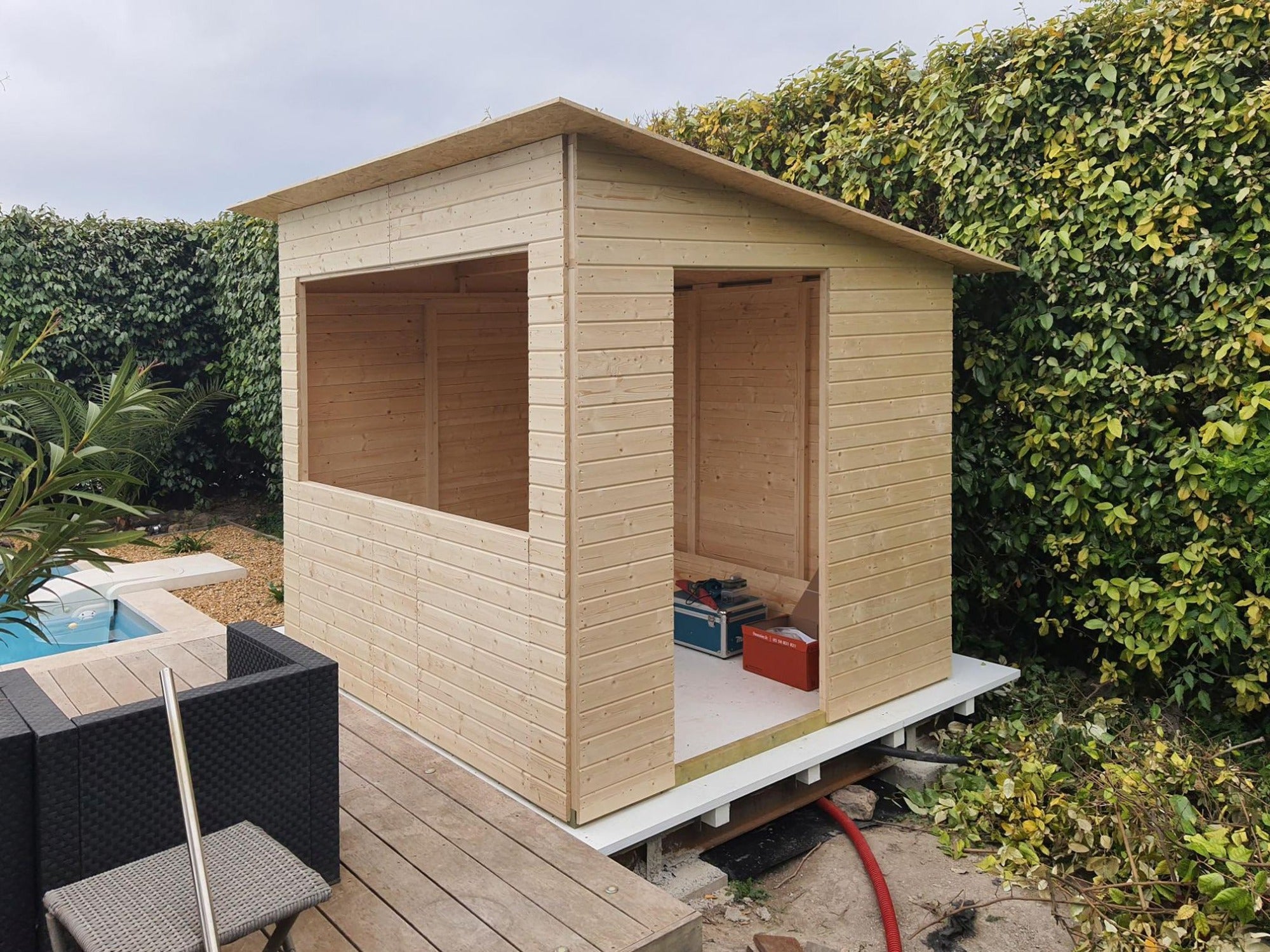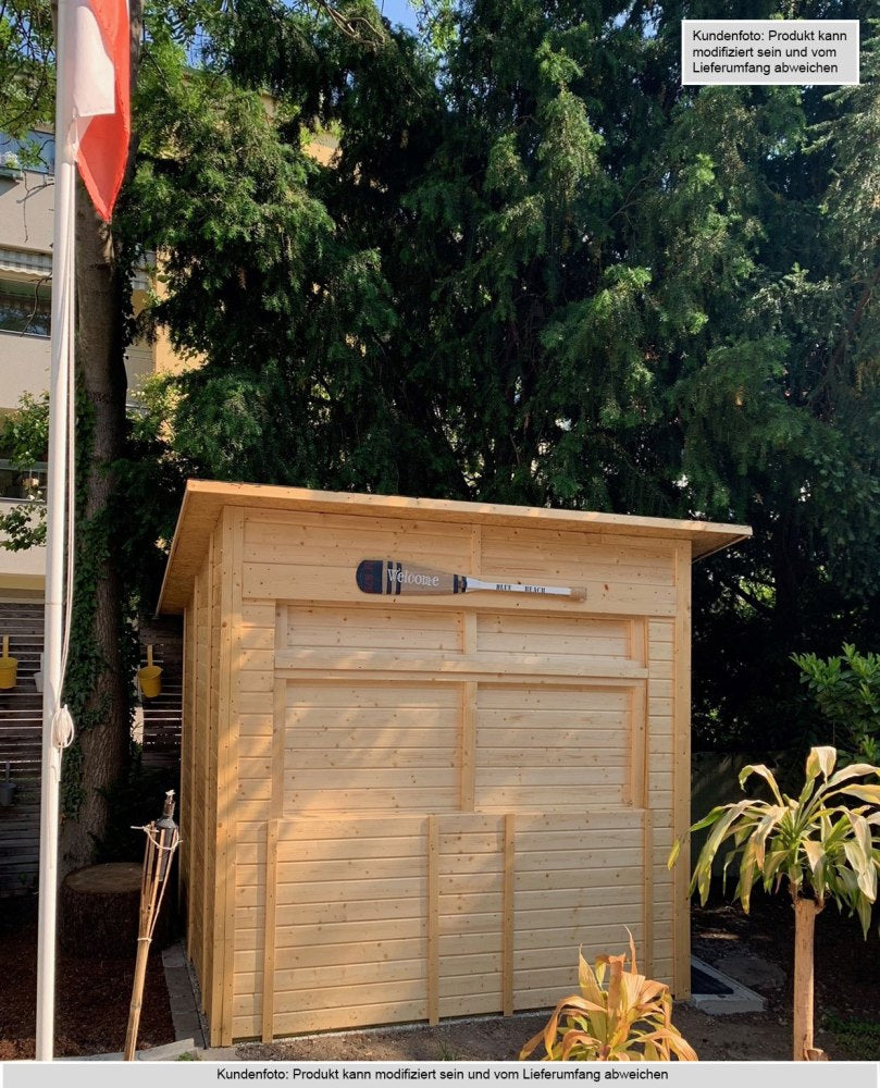 - Außenabmessungen mit Dach: 260 x 220 cm