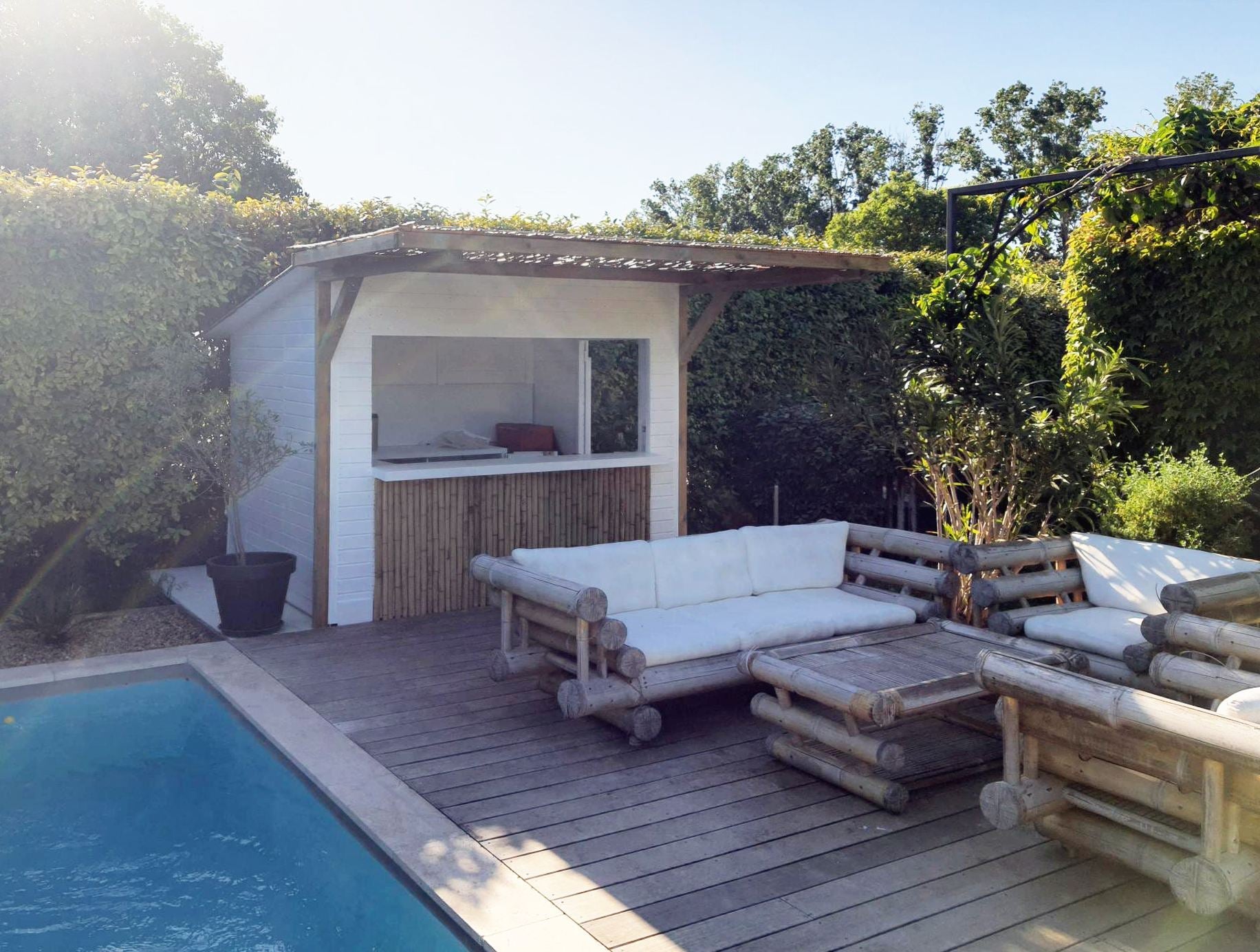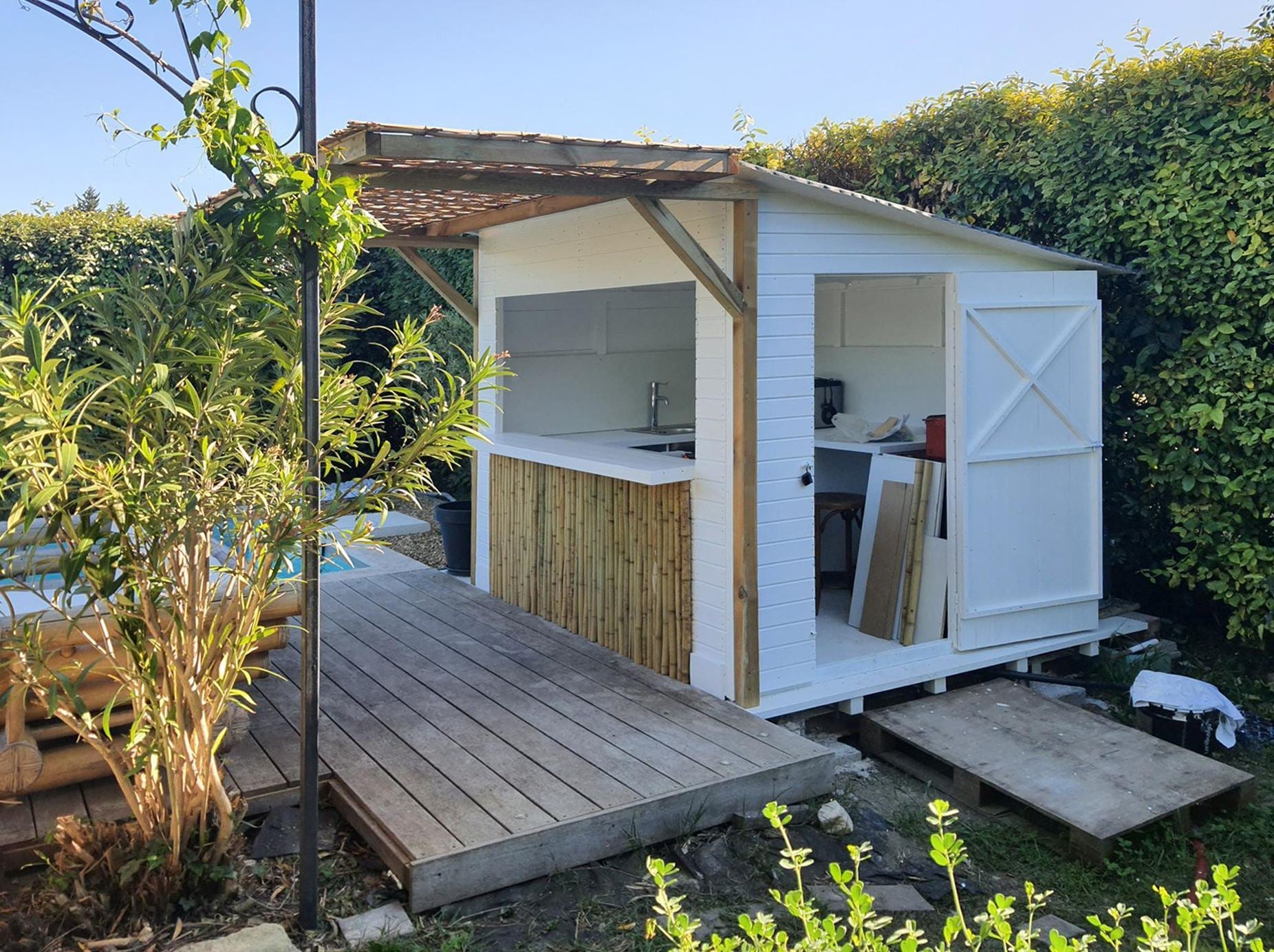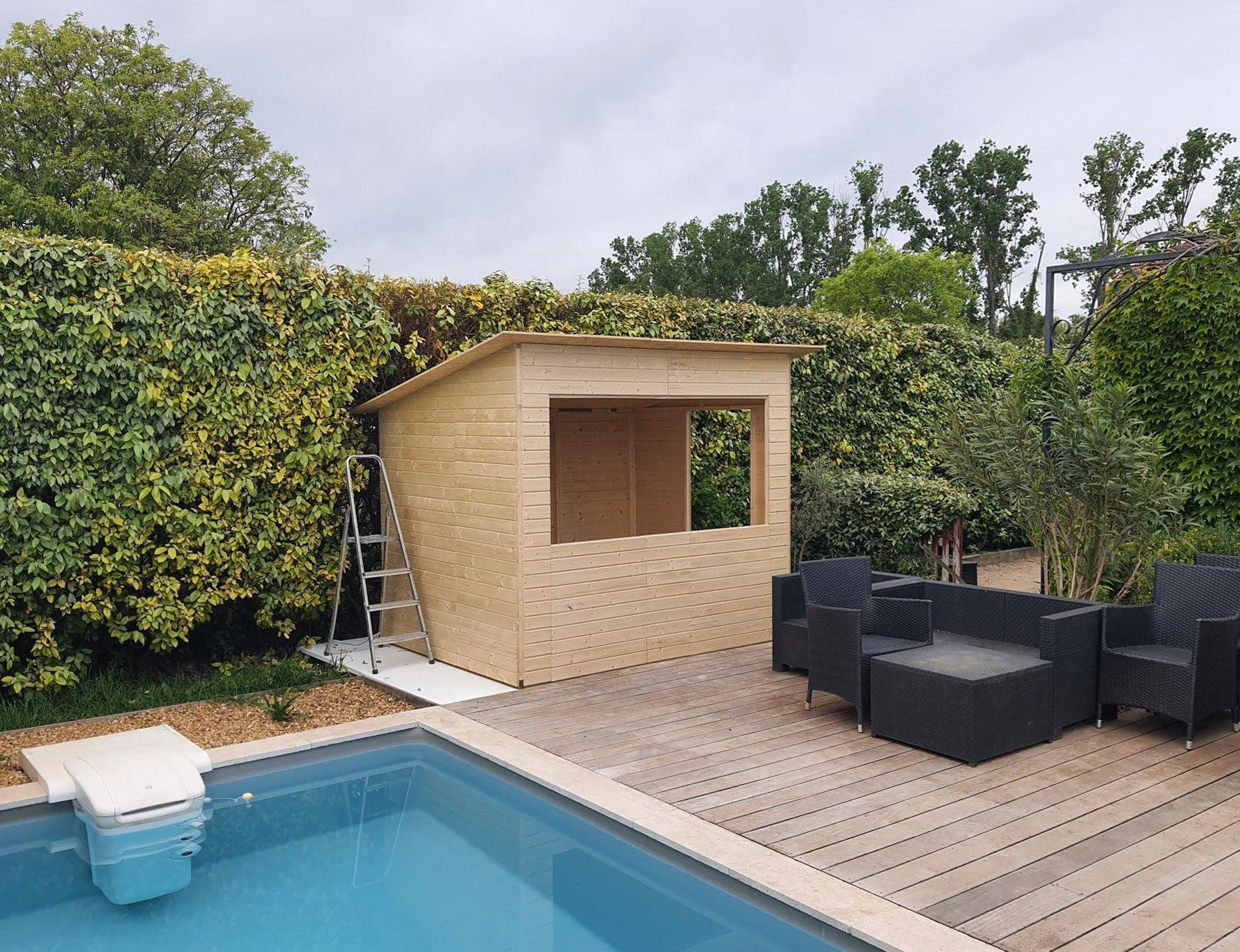 - Außenabmessungen mit Dach: 260 x 220 cm