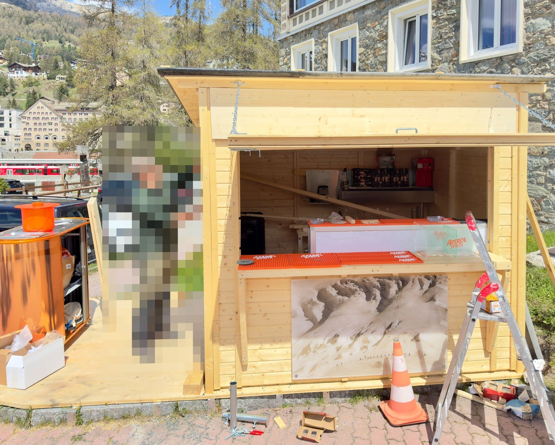 - der untere Bereich der zweiteiligen Klappe dient als Verkaufsfläche