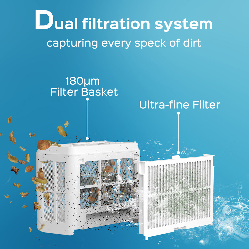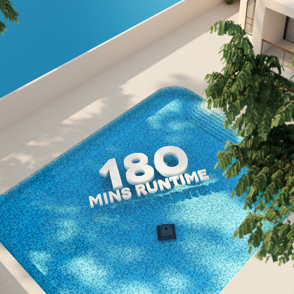 Da der Poolroboter kabellos ist, wird er per Akku mit Energie versorgt. Die Batterie vom Wybot C2 hält im vollständig geladenen Zustand bis zu zwei Stunden. Somit kannst du auch einen großen Pool damit reinigen. Wenn du ein kleineres Schwimmbecken hast, reicht die Akkukapazität für mehrere Runden pro Woche.